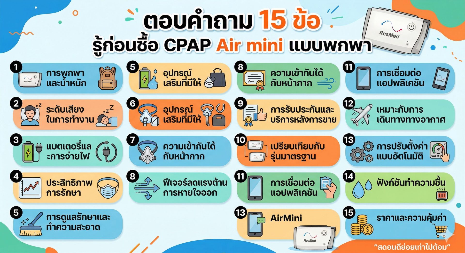 Airmini Full Set | CPAP ขนาดพกพามาเซตพร้อมหน้ากาก Nasal Mask (ประกันศูนย์2ปี)
