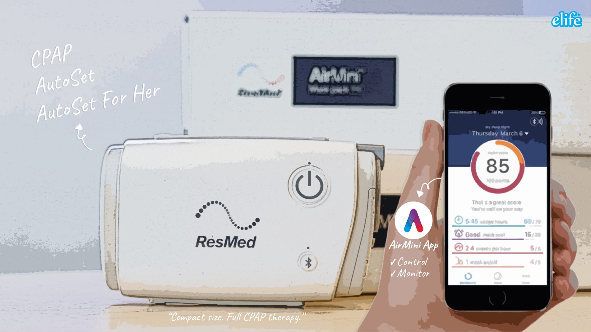 ResMed AirMini คือเครื่อง CPAP แบบพกพา (Travel CPAP) จากแบรนด์ ResMed ซึ่งเป็นผู้ผลิตเครื่อง CPAP ชั้นนำระดับโลก จุดเด่นคือขนาดเล็ก น้ำหนักเบา และออกแบบมาเพื่อให้ผู้ใช้สามารถรักษา OSA ได้อย่างต่อเนื่องแม้ขณะเดินทาง แม้ตัวเครื่องจะมีขนาดเล็ก แต่ AirMini ไม่ใช่อุปกรณ์เสริม และไม่ใช่เครื่องช่วยกรนทั่วไป — แต่เป็น CPAP มาตรฐานทางการแพทย์