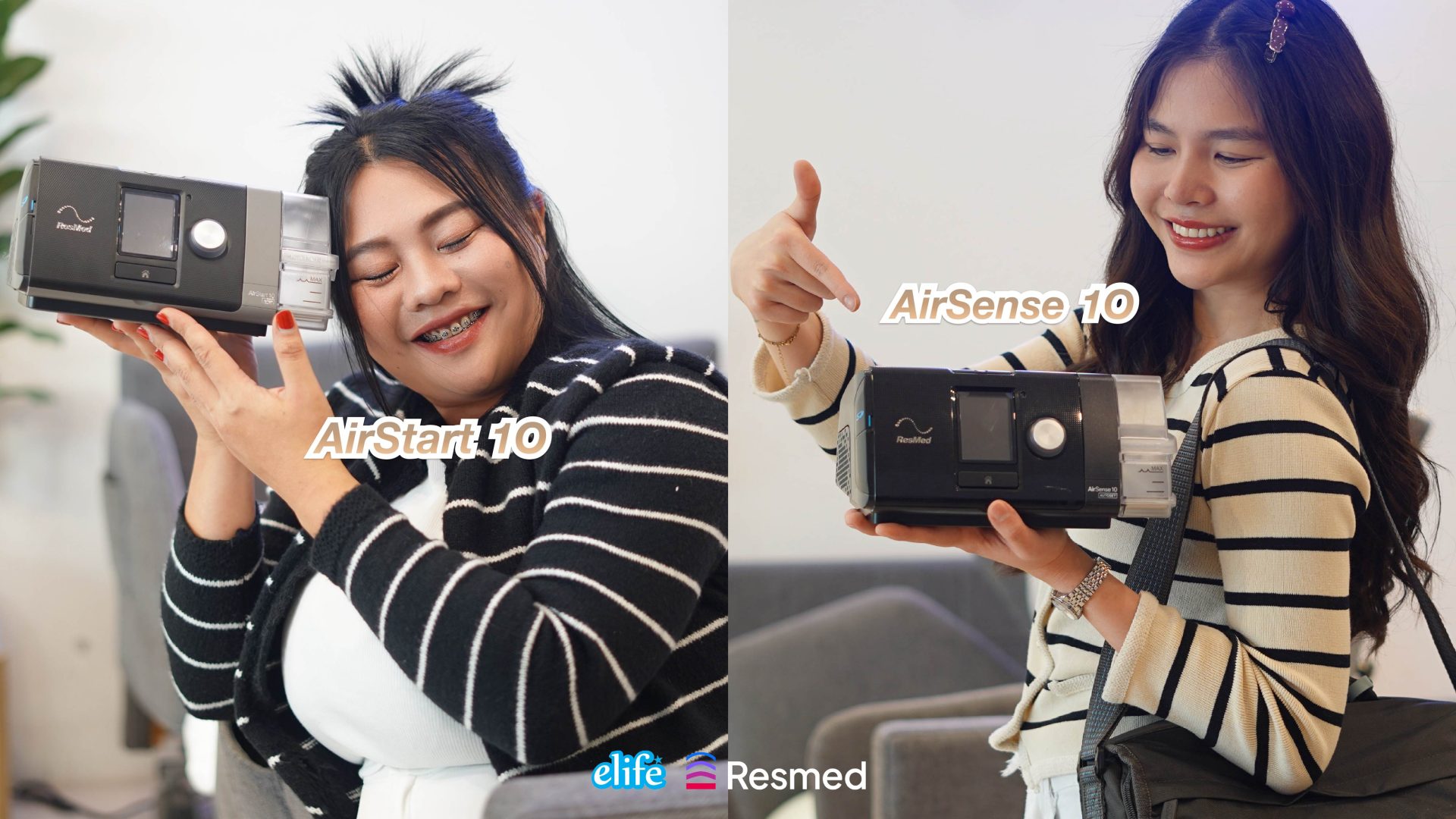 ResMed เป็นแบรนด์ CPAP ที่ได้รับความนิยมสูงและเป็นแบรนด์ที่ CPAP User หลาย ๆ ท่านไว้ใจ คงไม่มีใครไม่รู้จักอย่าง CPAP รุ่นตัวดัง อย่าง AirStart 10 และ AirSense 10 ซึ่งทั้ง 2รุ่น หน้าตาคล้ายกันมาก เหมือนกับแฝด หลายคนเริ่มต้นด้วยคำถามเดียวกันว่า “ควรซื้อ AirStart 10 พอไหม หรือเพิ่มงบไป AirSense 10 เลยดี?” เพราะแม้จะเป็นแบรนด์เดียวกัน แต่ราคาต่างกันเกินครึ่ง บทความนี้จะพาคุณดูความต่างแบบเข้าใจง่าย เพราะแม้จะดูคล้ายกันอย่างกับแฝด แต่รายละเอียดการทำงานและฟีเจอร์ภายในแตกต่างกันพอสมควร มาดูแบบชัด ๆ ก่อนตัดสินใจซื้อ