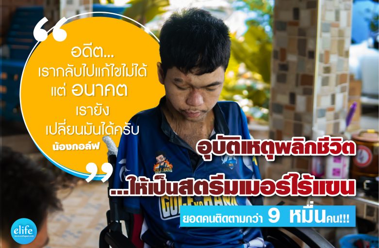 เมื่อปี 4 ปีก่อน ท่านอาจเคยได้ยินข่าว เด็กหนุ่มอายุ 14 ปีที่เกิดอุบัติเหตุไฟฟ้าแรงสูงช็อตจนทำให้สูญเสียแขนและเท้า เด็กชายคนนั้นคือน้องกอล์ฟหรือ Golf No Hand Chanel นั้นเอง!! ปัจจุบันน้องเป็นนักสตรีมเกมที่โด่งดังในโลกโซเชียล มียอดคนติดตามกว่า 9 หมื่นคน และยอดคนชมเป็นหลักแสน !! สงสัยกันไหมคะทำไมเด็กคนนี้จึงพลิกชีวิตตัวเอง มาเป็นคนที่ประสบความสำเร็จได้อย่างทุกวันนี้ยังไง มาดูบทสัมภาษณ์จากน้องกอล์ฟกันเลยค่ะ