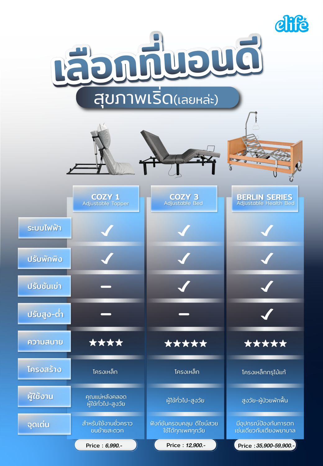 - เตียงไฟฟ้า → เตียงเพื่อสุขภาพ ปรับท่านอนดี