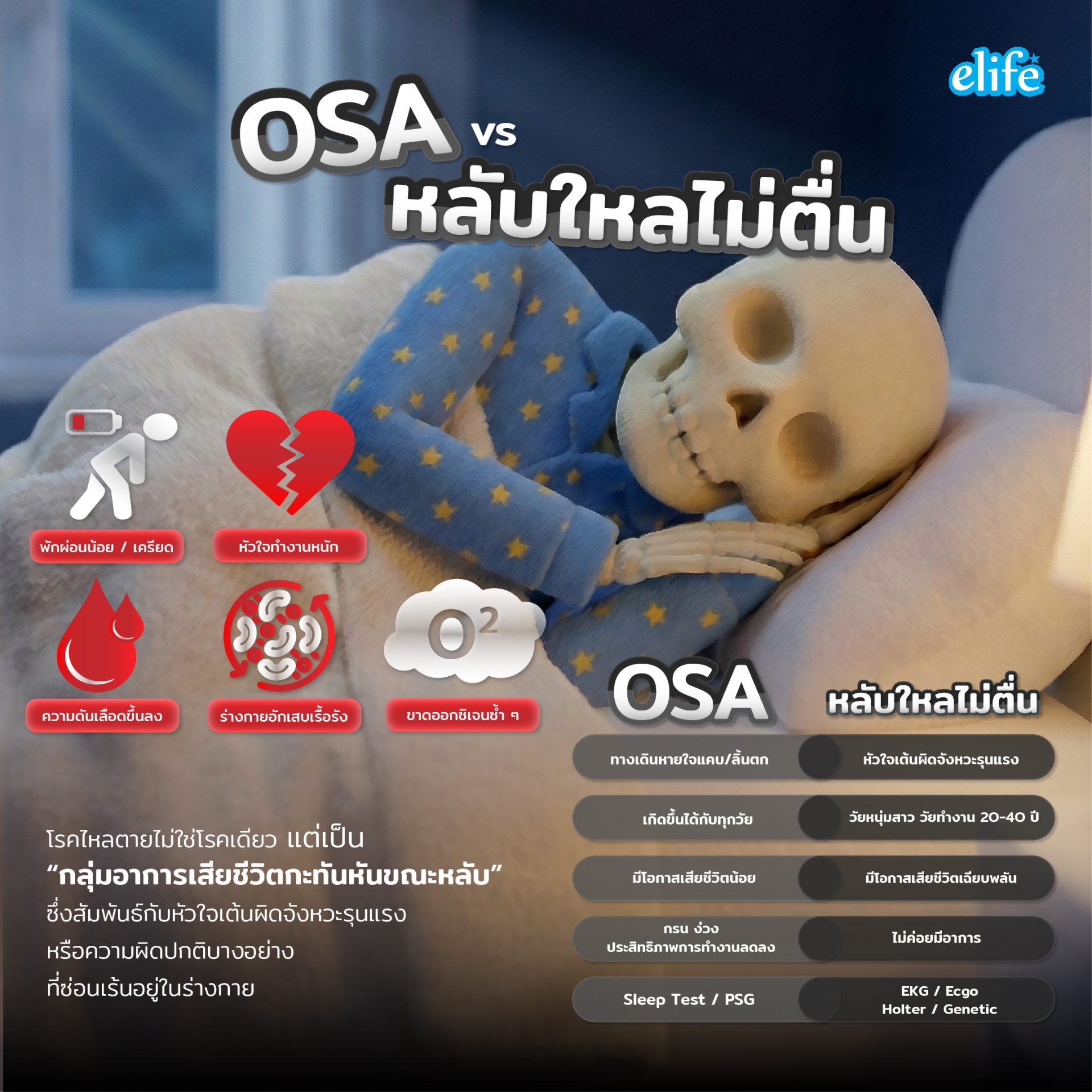 • สามารถทำให้เสียชีวิตฉับพลันระหว่างนอนได้ แม้อายุแค่ 25–40 ปี