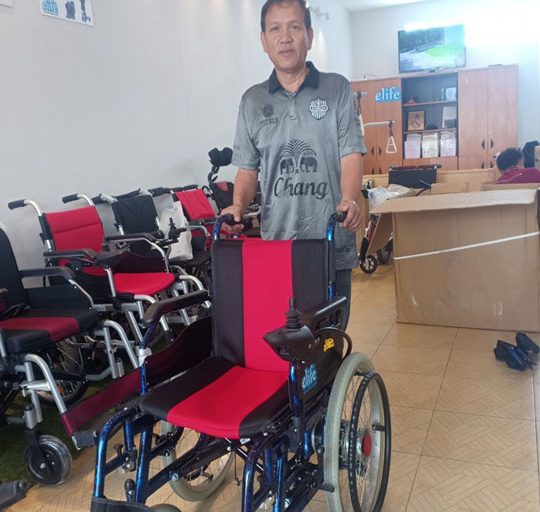 คุณสุธน เลือกใช้เป็นรุ่น Pw-101A ใช้งานได้ 3 ระบบ 1. คนนั่งบังคับเอง 2.ให้คนเข็นให้ 3.หมุนล้อ Manaul ด้วยตัวเอง