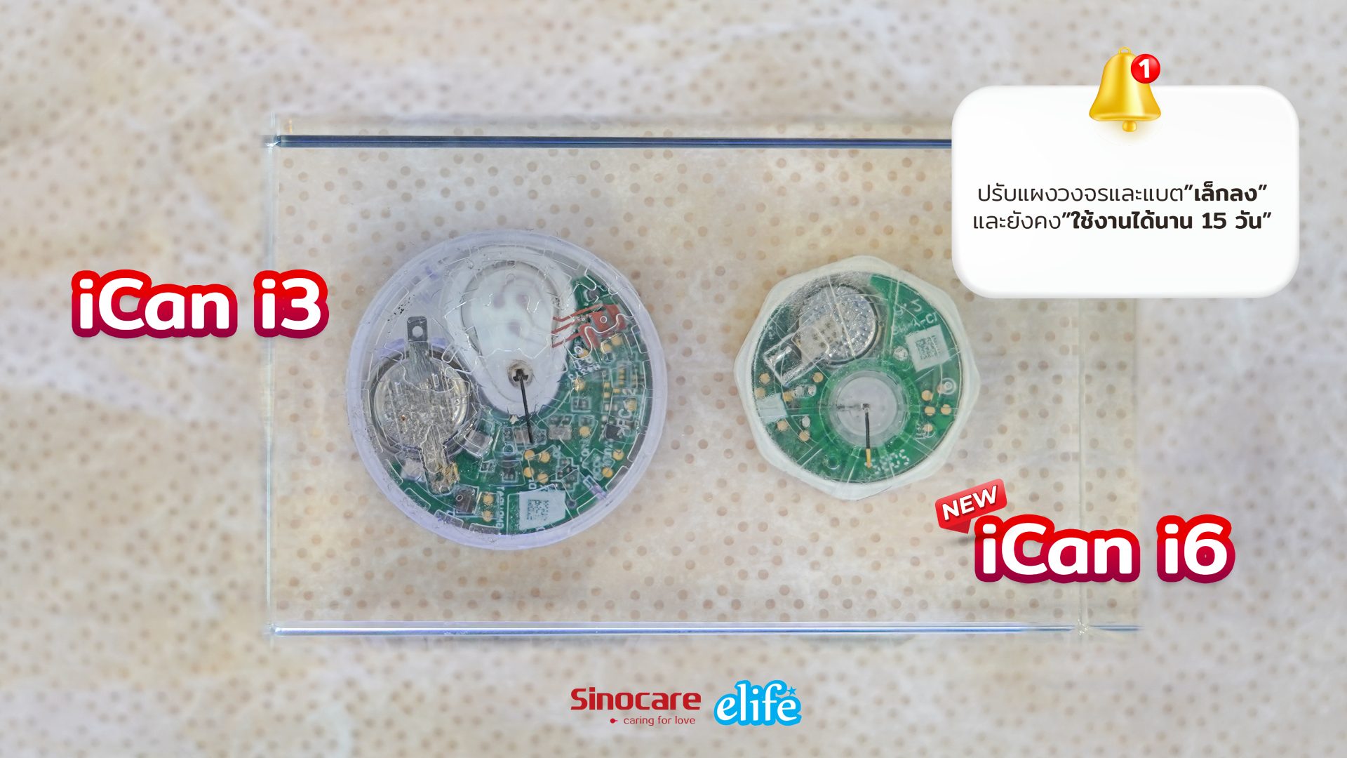 เครื่องตรวจน้ำตาลแบบต่อเนื่อง CGM แบบ All-in-1 ที่ปลอดภัยสำหรับเด็กตั้งแต่ 2 ขวบขึ้นไป มีแบตเตอรี่ในตัว ใช้ได้ 15 วัน เทียบเท่าการเจาะเลือด 7,160 ครั้ง ยี่ห้อ SinoCare รุ่น iCan i6 บอกค่าน้ำตาลทุก ๆ 3 นาที ไม่จำเป็นต้องดูมือถือตลอดเวลา เมื่อเปิดมือถือสามารถ Update ข้อมูลย้อนหลังได้